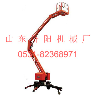 該系列升降機主要用于室外高空作業(yè)。折臂結(jié)構(gòu)緊湊,采用新型優(yōu)質(zhì)型鋼,強度高、重量輕、架設(shè)速度快,具有自動液壓支腿,工作臺既可升高又可水平延伸,還可旋轉(zhuǎn)??刹捎媒涣麟娫磫?,易于跨越障礙物到達工作位置,是理想的登高作業(yè)設(shè)備。該系列升降機廣泛用于市政、電力、路燈、公路、碼頭、廣告、廠礦車間大范圍作業(yè)。