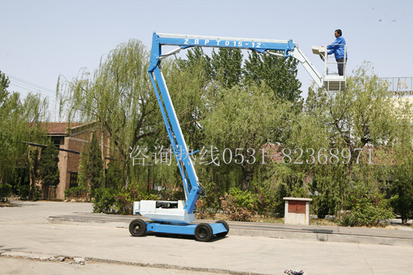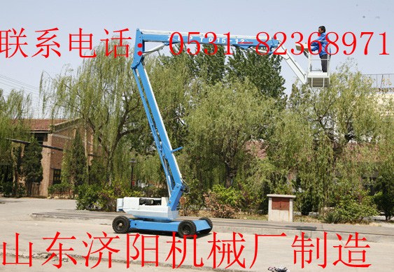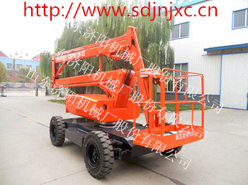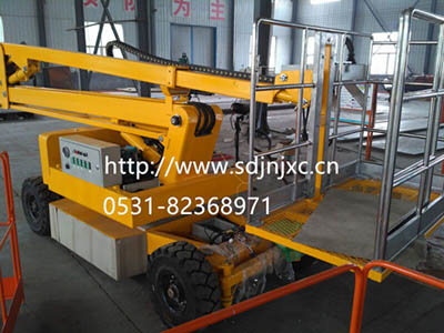 自行式折臂升降機(jī),利用柴油機(jī)為動(dòng)力,加電瓶采用電啟動(dòng),適用于野外及無電源場(chǎng)所作業(yè),自支腿、自升降、自行走,360°旋轉(zhuǎn)作業(yè)。本產(chǎn)品具有操作簡(jiǎn)單,使用方便,作業(yè)面大,特別是能夠懸伸作業(yè),跨越一定的障礙物或在一處升降,可進(jìn)行大范圍多點(diǎn)升降作業(yè)的特點(diǎn),極大地提高了工作效率。該系列高空作業(yè)平臺(tái)車廣泛用于市政、電力、路燈、公路、碼頭、廣告、園林、小區(qū)物業(yè)、廠礦企業(yè)車間等行業(yè)范圍升降作業(yè)。上升,下降,旋轉(zhuǎn)(360度)、探出等操作,易于跨越障礙到達(dá)工作位置,在不同情況下快,慢行走(前進(jìn),后退,轉(zhuǎn)方向)。