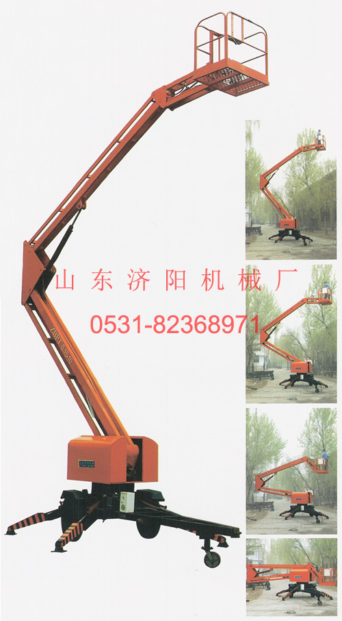 該系列升降機主要用于室外高空作業(yè)。折臂結(jié)構(gòu)緊湊,采用新型優(yōu)質(zhì)型鋼,強度高、重量輕、架設(shè)速度快,具有自動液壓支腿,工作臺既可升高又可水平延伸,還可旋轉(zhuǎn)??刹捎媒涣麟娫磫?,易于跨越障礙物到達工作位置,是理想的登高作業(yè)設(shè)備。該系列升降機廣泛用于市政、電力、路燈、公路、碼頭、廣告、廠礦車間大范圍作業(yè)。